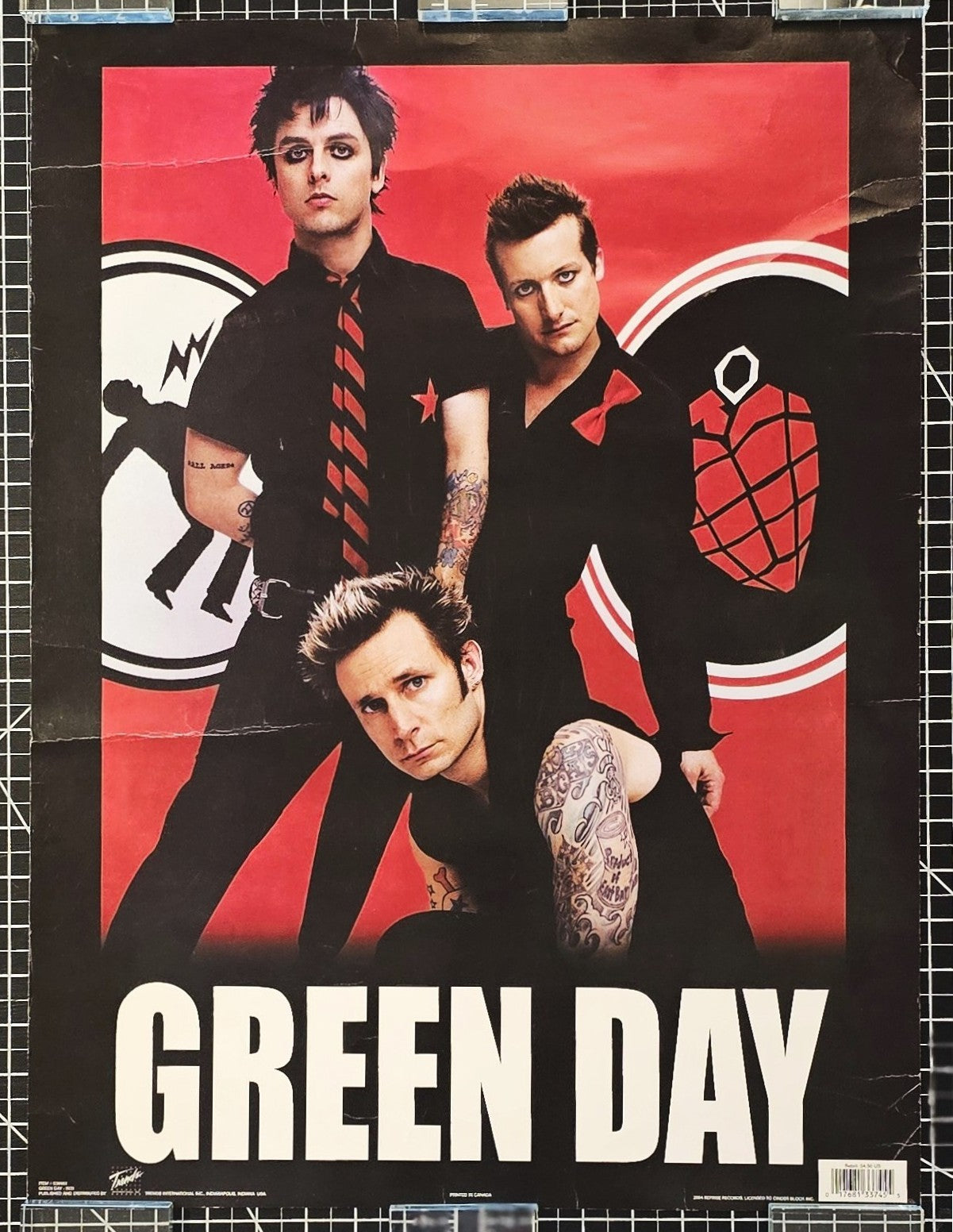 American Idiot marked a major turning point for the band, functioning as a full length concept album that directly addressed themes of political disillusionment, media saturation, and generational unrest in post 9 11 America. The album’s visual language became instantly recognizable and closely tied to Green Day’s public image during this period, extending across album art, stage design, and promotional materials like this poster.