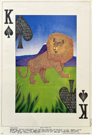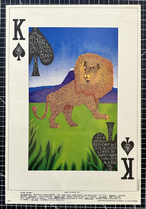 As part of the Family Dog series, King of Spades captures the playful experimentation of San Francisco poster art at its peak. Regal, surreal, and kinetic with psychedelic energy, Hatfield’s lion holds its ground among the era’s most inventive creations.