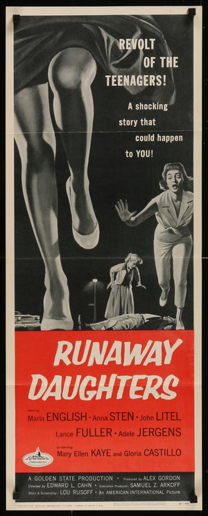 Directed by Edward L. Cahn and produced by American International Pictures, the film follows three teenage girls who bolt from home, only to find that freedom comes with a dangerous price. The dramatic composition, towering legs, and terrified faces deliver all the sensationalism that made 1950s exploitation cinema so unforgettable.