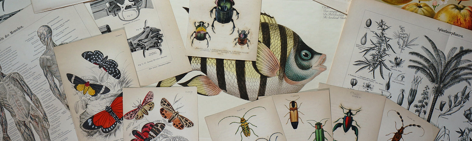 There are many reasons to collect and display antique prints. Some are intrigued by the connection to history and the knowledge they represent. Others are interested in specific subjects and topics, or perhaps a particular artist or author, and will collect only one type. For us, it's all about the image... our collection is chock full of natural history (specifically entomology), early technology, and just about anything else we think is unique. We love everything about these wonderful old gems: the history, the feel of the paper, the patina, even the aroma. We love that they're not perfect, and every smudge, stain and blemish is part of the history and story. We love thinking about the hands this piece of paper have passed through over the years, and the journey it took to get to our collection. We hope you enjoy them too, and find the perfect piece of history to call your own!