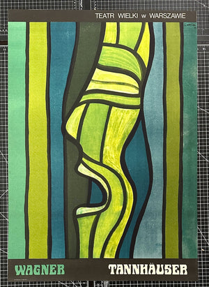 This original 1971 Polish poster was created for a production of Richard Wagner’s Tannhäuser at the Teatr Wielki in Warsaw, one of the most important cultural institutions in postwar Poland. The piece reflects the bold visual experimentation that defined the Polish School of Posters, a movement that transformed opera, theater and film advertising into an expressive art form all its own.