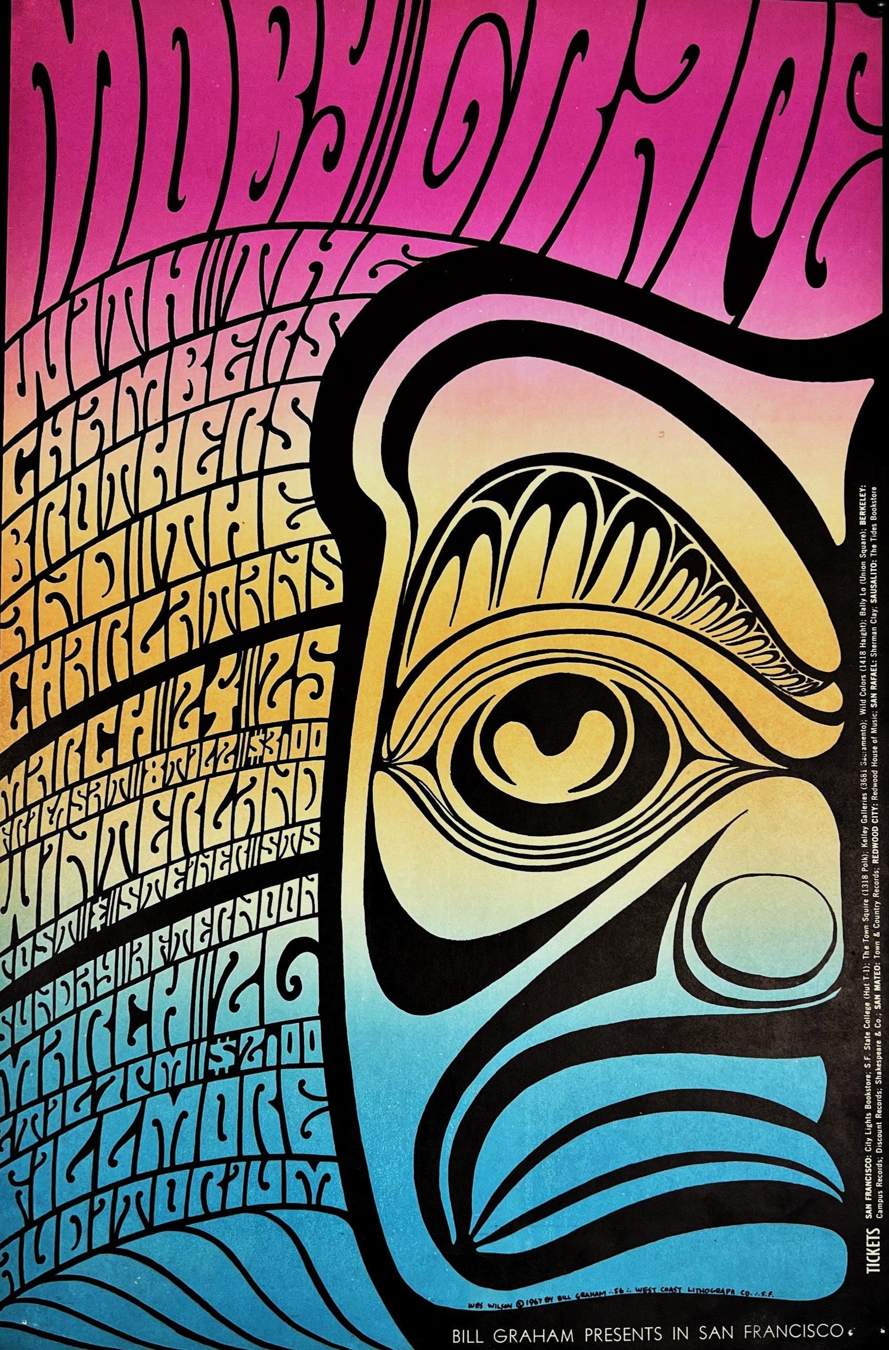 Step right up and behold a true masterpiece of the psychedelic era - an original, first-printing concert poster by none other than the legendary graphic artist, Wes Wilson. This poster is a feast for the eyes, blending vivid colors and bold graphics with Native American imagery to create a truly mind-bending work of art.