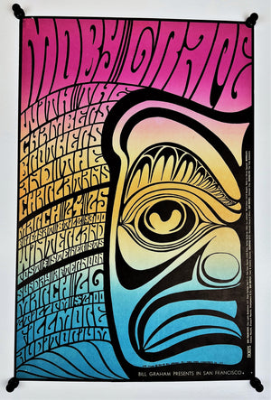But it's Wes Wilson's influence that truly sets this poster apart. The artist's fascination with Native American imagery is evident in his interpretation of a face mask that dominates the lower right-hand corner. Half of the mask's face peeks out from beneath the swirling, psychedelic patterns, creating a sense of mystery and wonder that perfectly captures the spirit of the times.