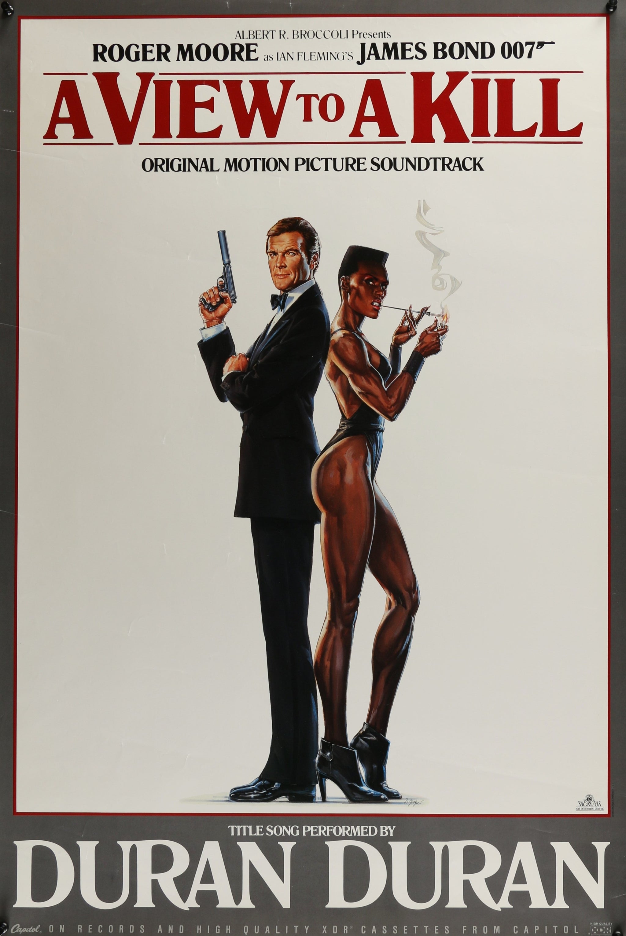 Here’s Bond at his coolest and the 80s at their boldest. This original 1985 poster was created for the A View to a Kill motion picture soundtrack, starring Roger Moore as the ever-suave 007 and Grace Jones as the unforgettable May Day. The chemistry? Electric. The style? Pure power and polish.